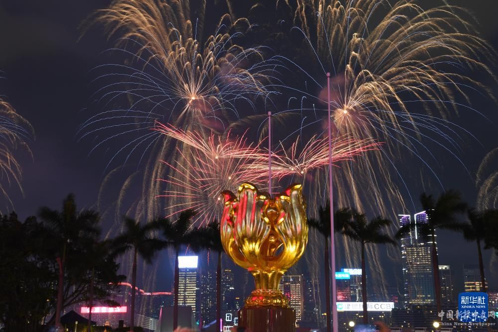 10月1日晚,香港國(guó)慶煙花匯演在維多利亞港舉行,慶祝中華人民共和國(guó)成立75周年。