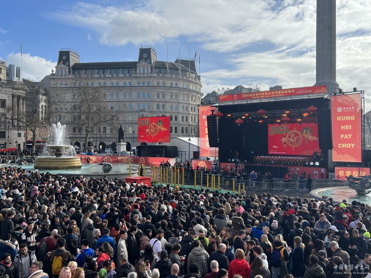 英國(guó)倫敦“四海同春”新春慶典在特拉法加廣場(chǎng)舉行。