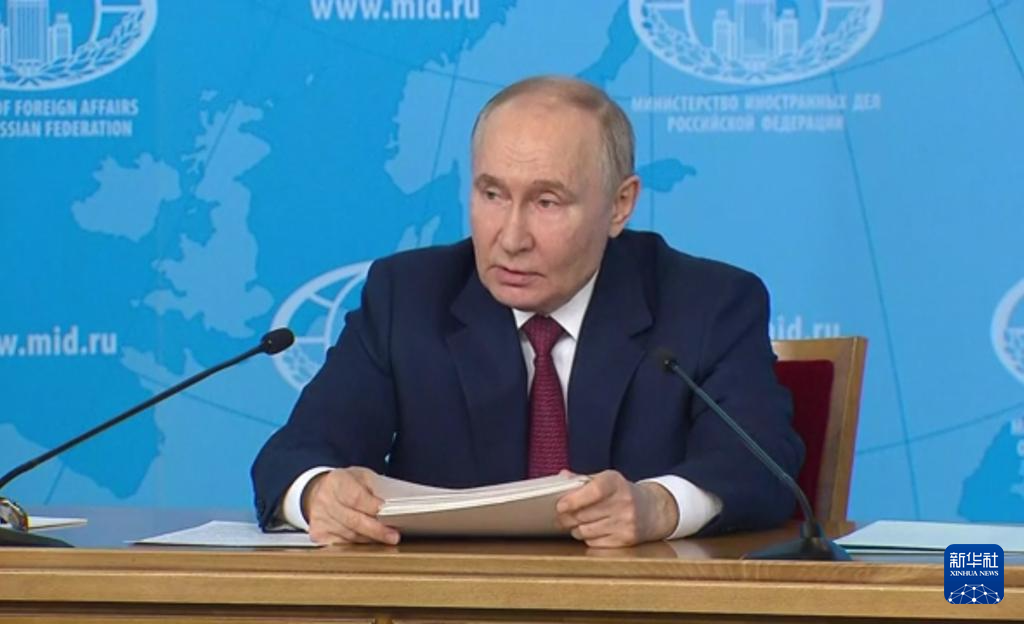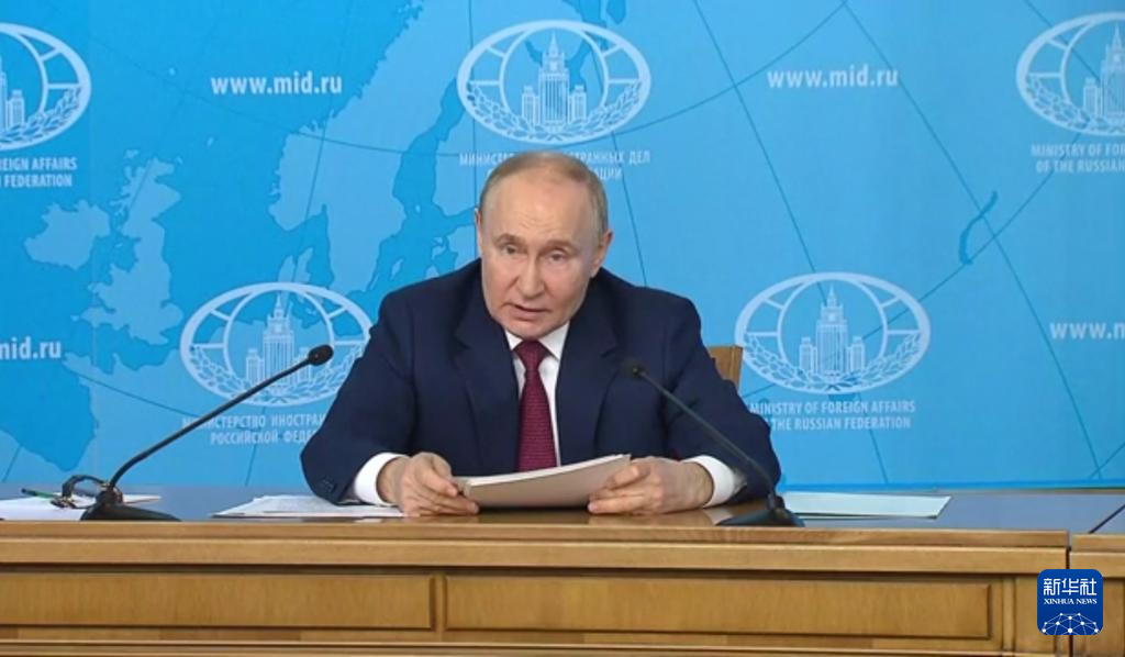 6月14日,在俄羅斯首都莫斯科,俄羅斯總統(tǒng)普京在俄外交部發(fā)表講話(視頻截圖)。