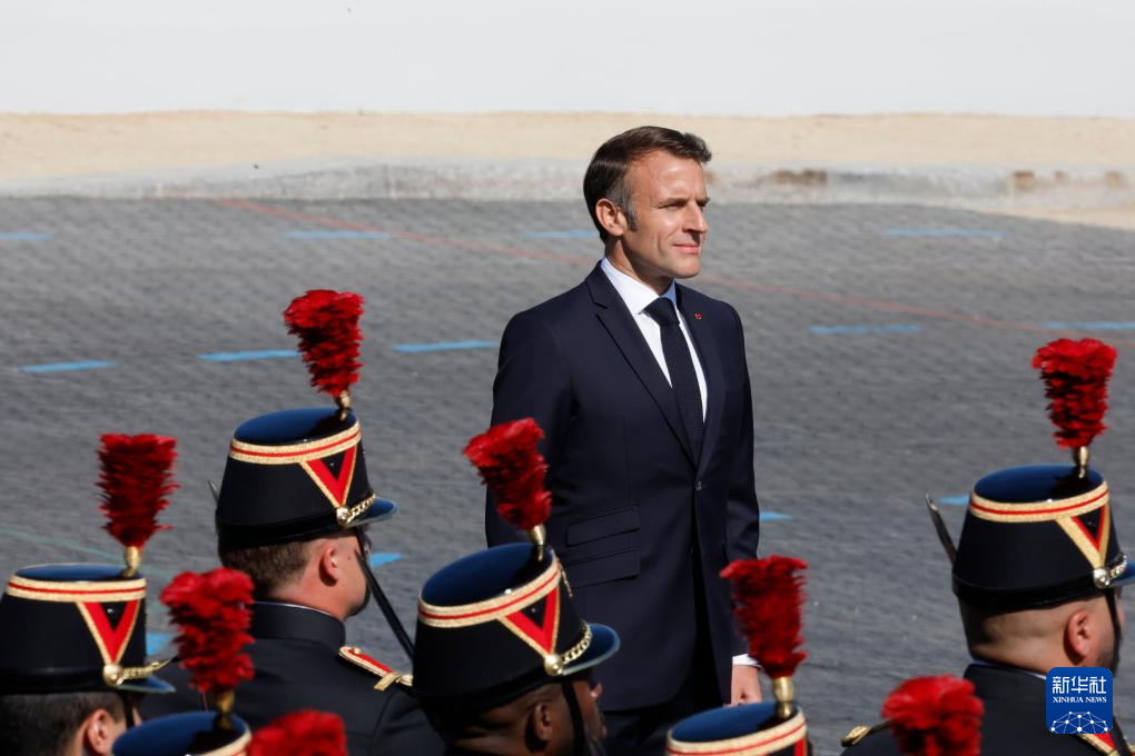 7月14日,在法國巴黎凱旋門附近,法國總統(tǒng)馬克龍出席國慶閱兵式。