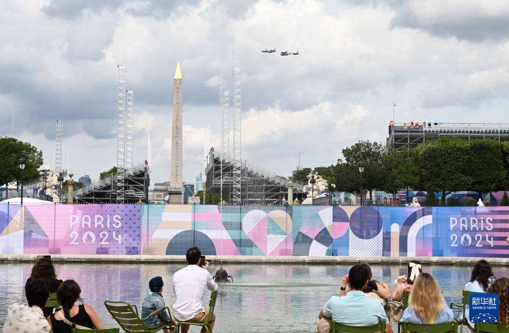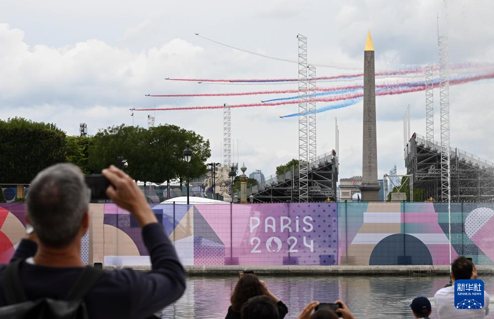 7月14日,觀眾在巴黎協(xié)和廣場觀看法國國慶閱兵式的飛行表演。