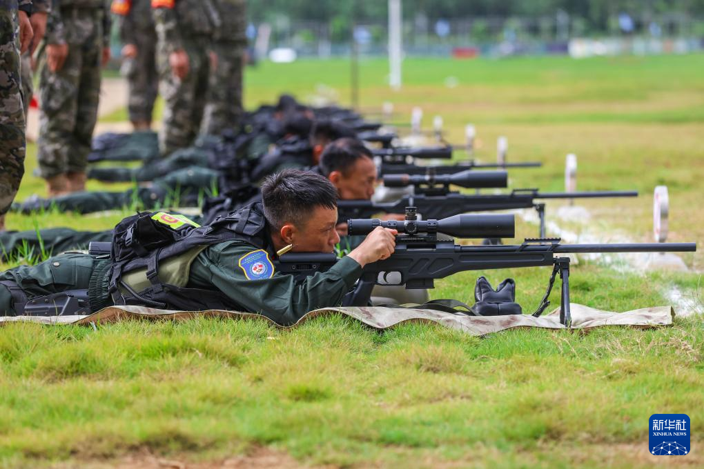中越雙方隊員進行狙擊步槍對不動目標射擊訓練(7月25日攝)。新華社發(fā)(果志遠 攝)
