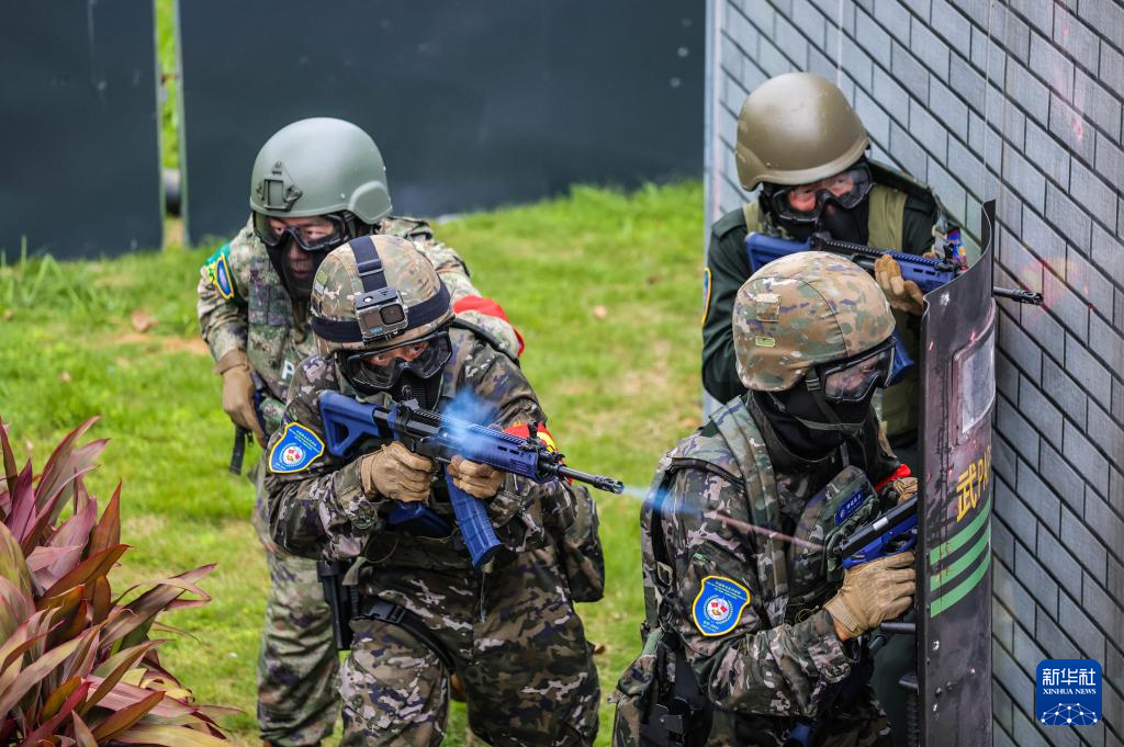 中越雙方隊員進行街區(qū)搜索戰(zhàn)術(shù)訓練(7月27日攝)。新華社發(fā)(果志遠 攝)