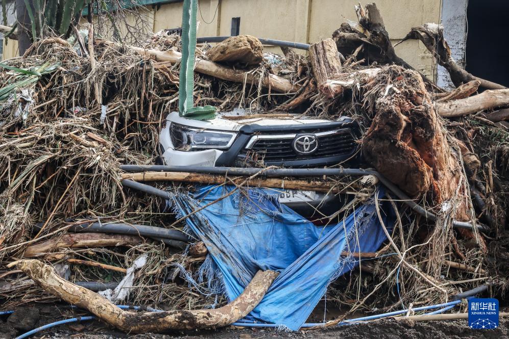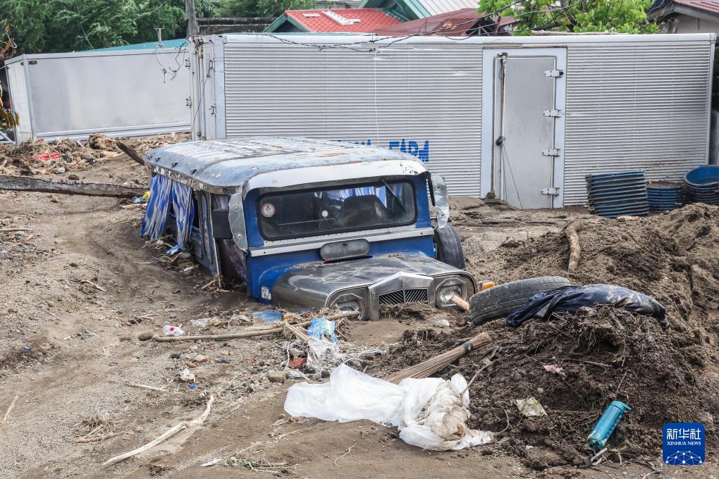 這是10月25日在菲律賓八打雁省拍攝的被掩埋的汽車。