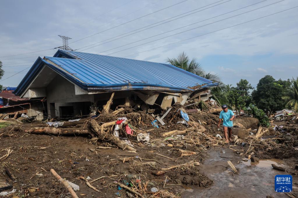 10月25日,在菲律賓八打雁省,當(dāng)?shù)鼐用穹祷丶抑胁榭瓷襟w滑坡對(duì)房屋造成的損失。