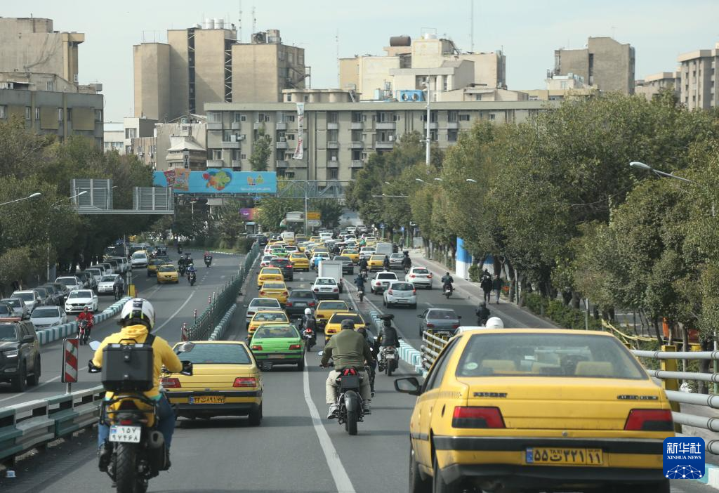 10月26日,車輛行駛在伊朗首都德黑蘭街頭。
