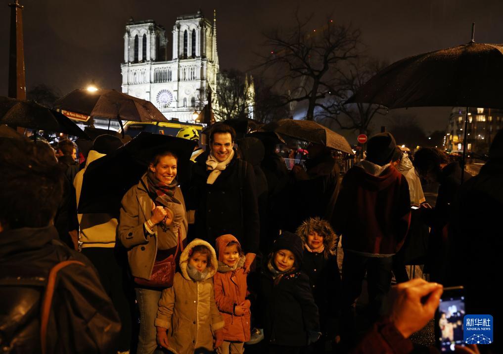 12月7日,人們冒雨聚集在法國(guó)巴黎圣母院外。