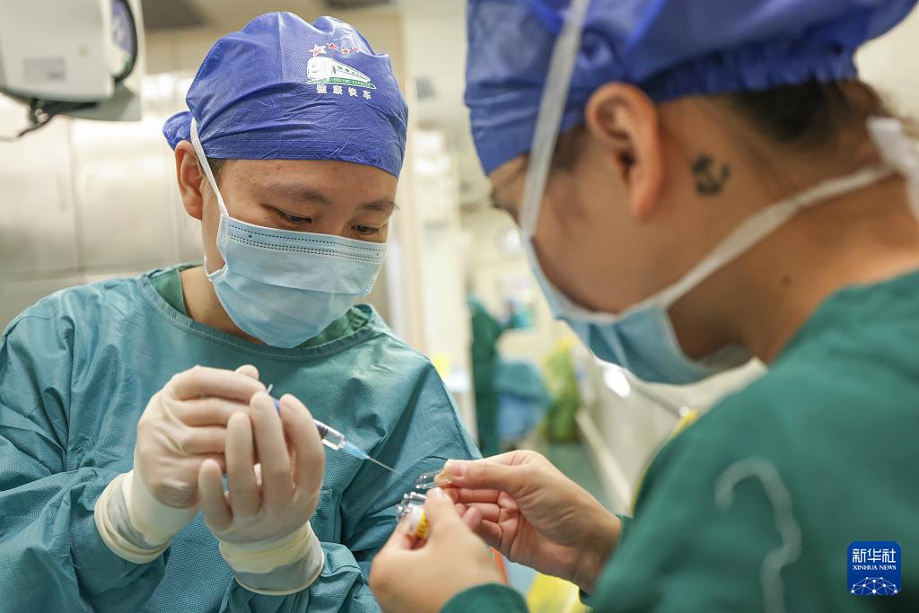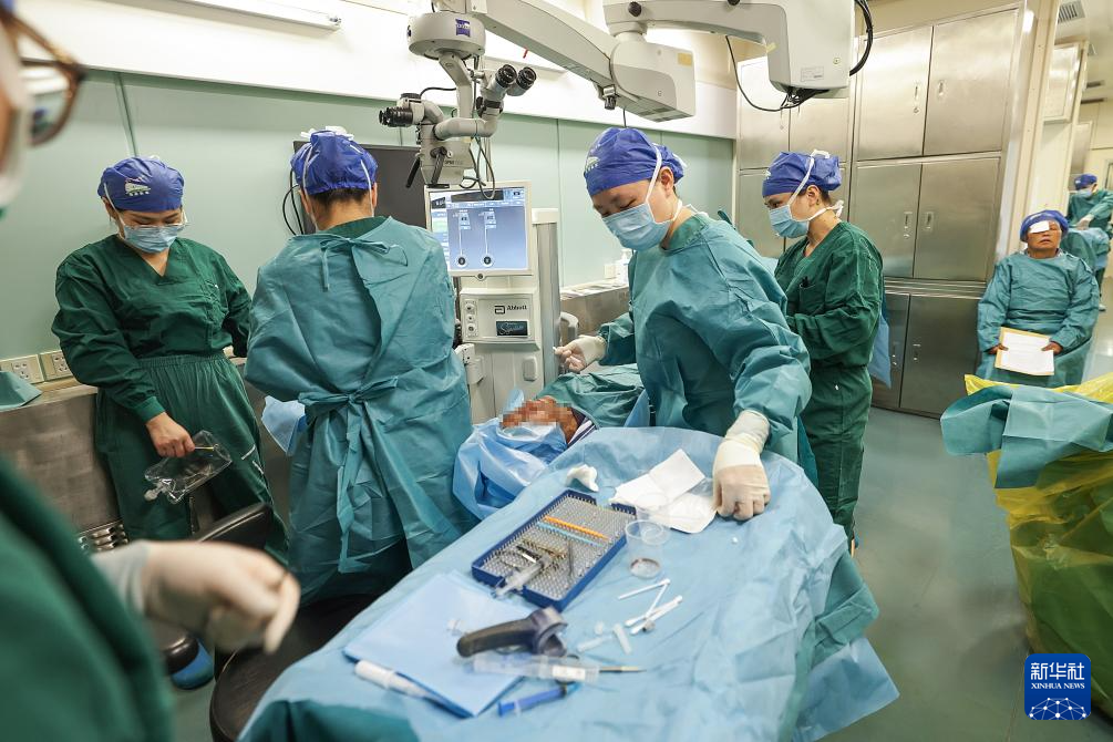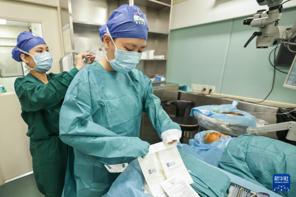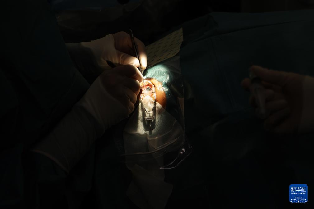 12月12日,胥思洋在“中國石化光明號”健康快車上的手術(shù)室內(nèi)為患者手術(shù)。
