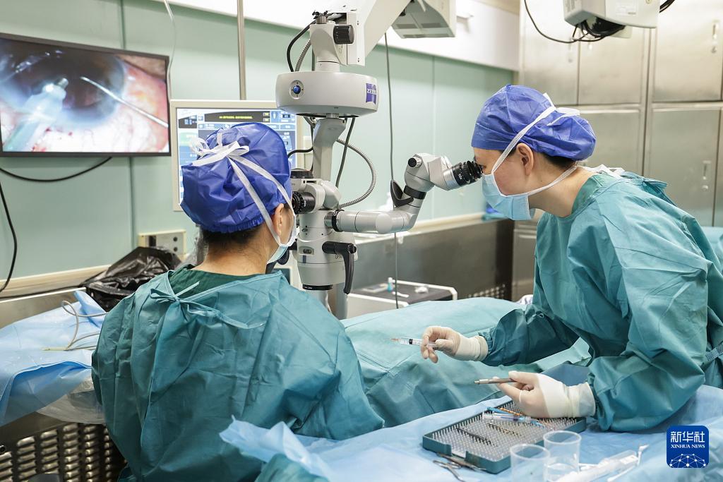 12月12日,胥思洋(右)在“中國石化光明號”健康快車上的手術(shù)室內(nèi)為患者手術(shù)。