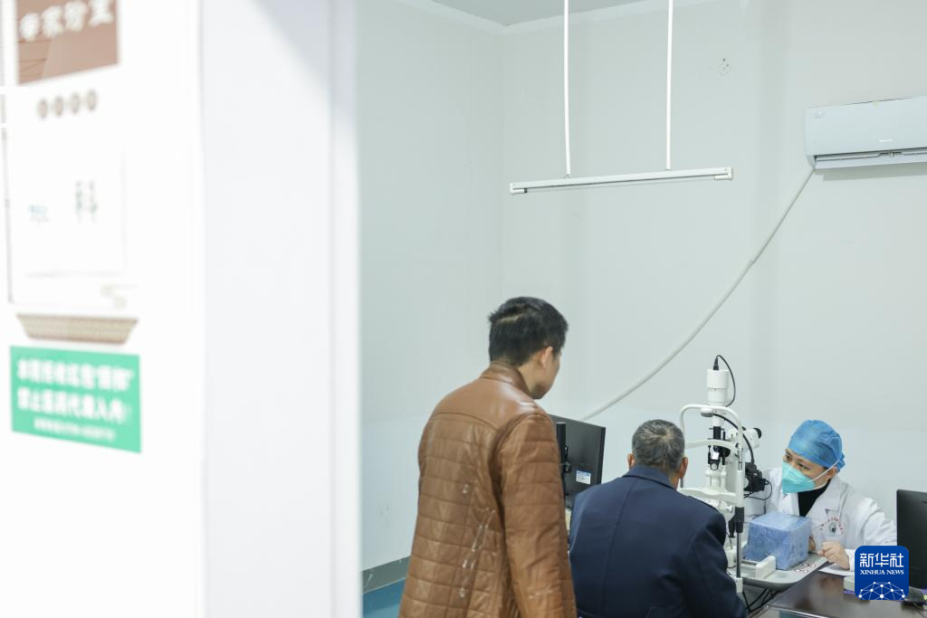 12月12日,在撫州市中醫(yī)醫(yī)院門診,胥思洋為聞訊趕來求醫(yī)的白內(nèi)障患者進(jìn)行眼部檢查。