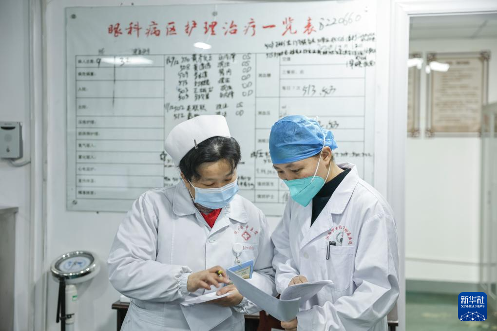 12月12日,胥思洋在撫州市中醫(yī)醫(yī)院病房與同事交流。