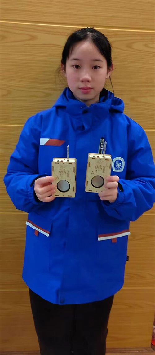 中國新報湖北荊門訊(通訊員 王光興 劉書銘 何雨仙)“用四毫米螺絲固定喇叭、用四毫米螺絲將語音對角模塊固定在木塊上、用四毫米螺絲將電池盒固定在語音對講模塊背面...... ”2月22日,湖北省荊門市掇刀區(qū)軍馬場學校七(二)班學生劉雨霖以元宵燈會為主題,制作了一款元宵對講機,可用于元宵燈會中協(xié)調工作、現(xiàn)場指導、處理緊急情況、加強安全管理等。