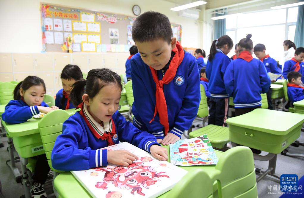 2月26日,在北京市海淀區(qū)中關(guān)村第四小學(xué),二年級(jí)的學(xué)生在開學(xué)第一課中交流。