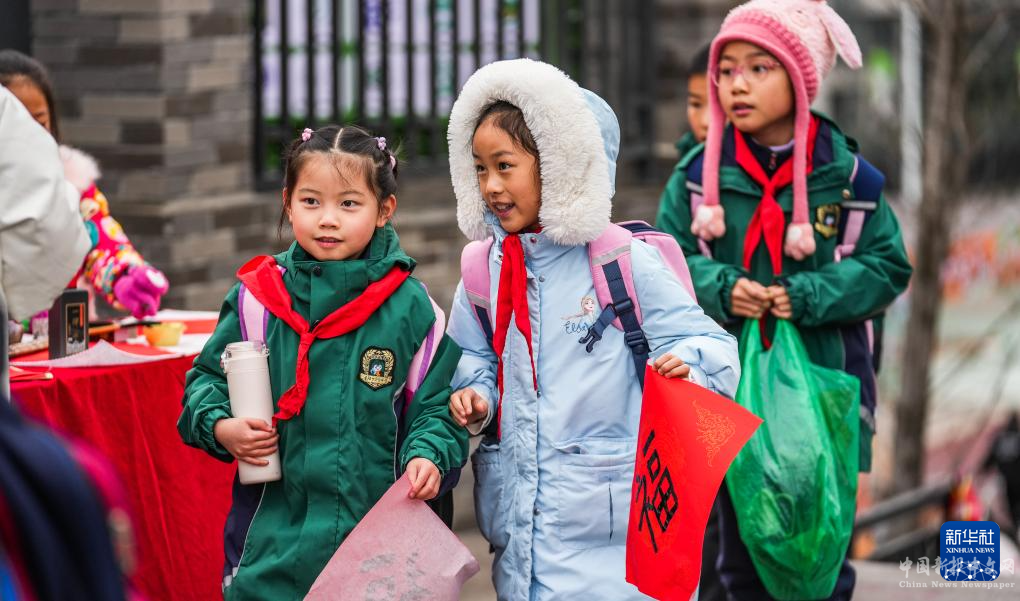2月26日,在北京市海淀區(qū)中關(guān)村第四小學(xué),二年級(jí)的學(xué)生上開學(xué)第一課。