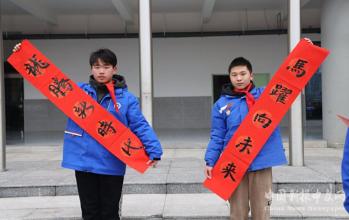 開學(xué)典禮上,軍馬場學(xué)子現(xiàn)場用筆墨寫下了“龍騰新時(shí)代 馬躍向未來”的對聯(lián),抒發(fā)自己的鴻鵠之志,愛國之情。