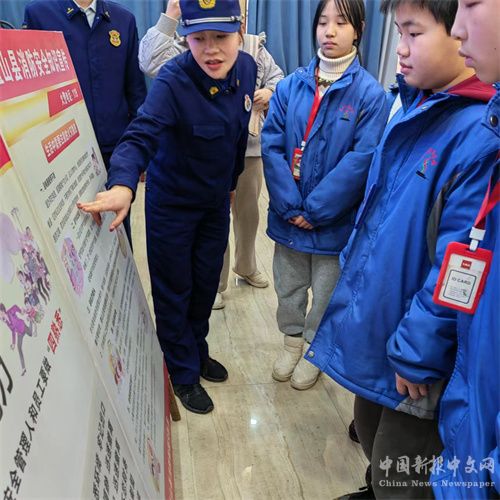 “下面我們分批來看消防宣傳展板,我們要做小小消防員,要知道‘四熟悉’……”“老師”邊指導學生看展板邊講解。“通過看展板和老師講解,我們對消防知識知道更加全面,我們要當好小小消防員,把消防知識帶回家里、帶回村里,讓大家都了解消防知識,增強安全意識。”初中205班同學高香凝邊看展板邊激動地說道。