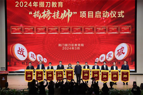 3月17日,湖北省荊門市掇刀區(qū)在2024年教育工作會上隆重發(fā)布2024年掇刀教育十大專項行動,共同迎接描繪掇刀教育未來的模樣。軍馬場學(xué)校、十里牌小學(xué)、石化一小等10所學(xué)校爭先“揭榜”,被授予帥旗。
