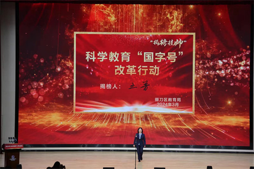 ‘全國中小學(xué)科學(xué)教育實驗區(qū)’‘教育部人工智能教育基地’這雙國字號落地掇刀,標(biāo)志著掇刀教育高質(zhì)量發(fā)展邁出了堅實的步伐。今天,作為‘揭榜’學(xué)校,我內(nèi)心充滿激動與自豪。同時,也深感責(zé)任重大,加強科學(xué)教育和人工智能教育的融合與創(chuàng)新,推動教育質(zhì)量的全面提升,將成為我們的目標(biāo)和方向。”軍馬場學(xué)校校長王芳揭榜科學(xué)教育“國字號”改革行動時說,我們將在深入推進(jìn)“全國中小學(xué)科學(xué)教育實驗區(qū)”工作進(jìn)程中,以建設(shè)教育部人工智能教育基地為契機,持續(xù)探索在教育“雙減”中做科學(xué)教育加法的系列舉措,以科學(xué)教育“國字號”改革行動的五大工程為抓手,重點探索和實踐人工智能教學(xué)新模式,以提高教育質(zhì)量、培養(yǎng)智能創(chuàng)新人才,提升教育的影響力和輻射力。聚焦人工智能課程體系建構(gòu),聚焦科學(xué)教育空間拓展,聚焦全域教師科學(xué)素養(yǎng)提升,聚焦少年科學(xué)家培養(yǎng),聚焦科學(xué)大課堂協(xié)同,在科學(xué)教育改革行動中,在人工智能教育領(lǐng)域里為廣大青少年插上科學(xué)的翅膀!