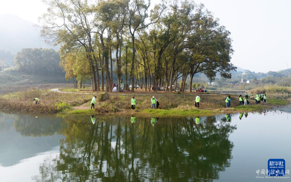 3月21日,在重慶市北碚區(qū)澄江鎮(zhèn)柏林村,生態(tài)環(huán)保青年志愿者在清理河畔垃圾。