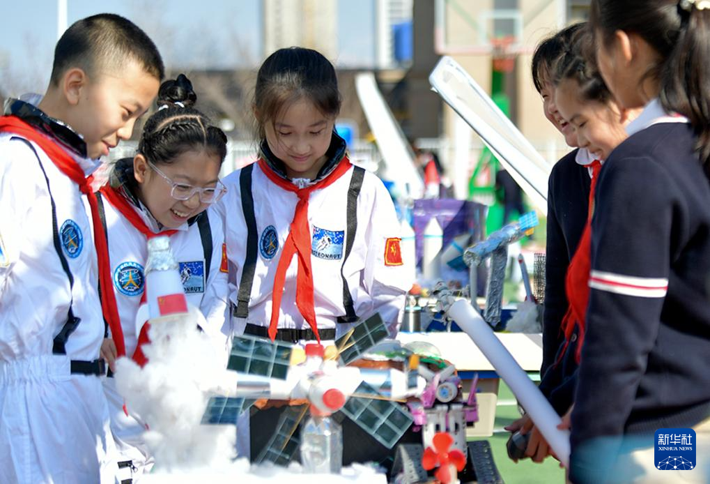 3月26日,烏魯木齊市第76小學(xué)學(xué)生在科技節(jié)上參觀體驗(yàn)。