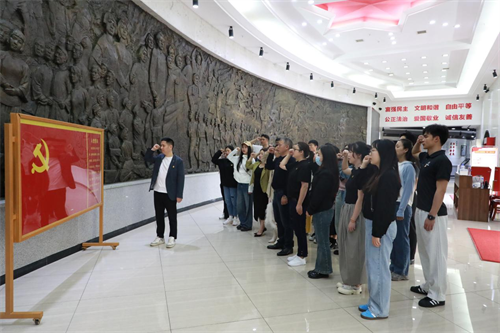 在衡陽革命烈士陳列館里,全體黨員隊列整齊、神情莊重,舉起右拳,重溫入黨誓詞,向英勇犧牲的烈士致以最高敬意。