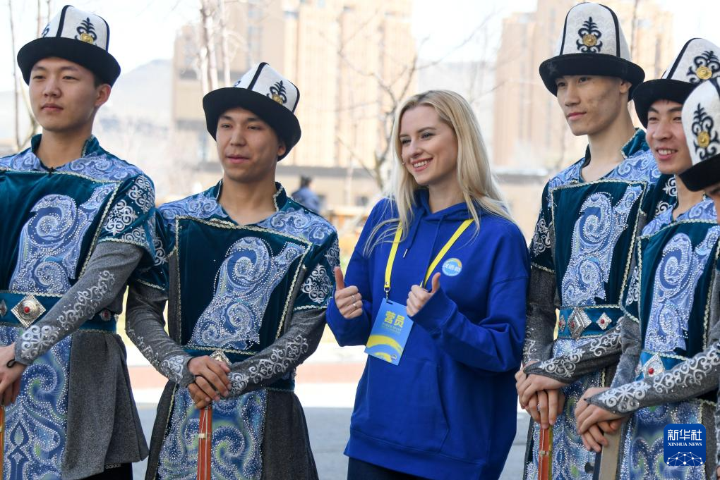 4月15日,參加春令營的來華青年學生(左三)與新疆師范大學學生在開營儀式表演結束后合影。