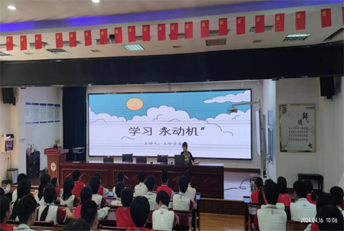 王珍子老師以“學習‘永動機’”為題,為初一年級全體潛質生上了一堂別開生面的心靈輔導課。課上,她以“如何打造學習動力”為切入點,結合講述晚唐詩人高適、滑雪冠軍谷愛凌、籃球傳奇科比等故事,以及分享身邊的后進生通過奮力拼搏華麗蛻變?yōu)樽吭缴膭钪竟适?,激發(fā)大家的學習內驅力。結合學生現(xiàn)狀以及存在問題,她分享了“培養(yǎng)興趣(興趣遷移)、確立目標理想、制定合理的學習計劃、有成就感的任務、用好學習資源、適當設置獎勵”等6個有效方法。學生們一邊認真傾聽,一邊認真記筆記。