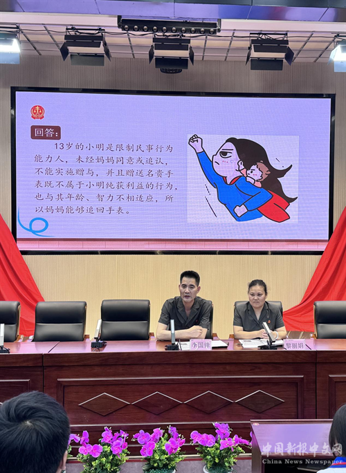 中國(guó)新報(bào)(通訊員 黃智輝)為切實(shí)做好未成年人保護(hù)工作,預(yù)防校園欺凌事件的發(fā)生,積極構(gòu)建平安和諧校園。4月17日下午,衡陽(yáng)市中級(jí)人民法院刑事審判第一庭庭長(zhǎng)李國(guó)鋒(衡陽(yáng)市第十五中學(xué)法治副校長(zhǎng))、未成年人案件綜合審判庭副庭長(zhǎng)黎麗娟一行四人受邀來(lái)到衡陽(yáng)市第十五中學(xué)給七年級(jí)部分學(xué)生開展了一場(chǎng)以《拒絕校園欺凌  守護(hù)青春凈土》為主題的法治宣傳講座,衡陽(yáng)市第十五中學(xué)校長(zhǎng)劉家彪、德育部門全體成員出席了活動(dòng)。