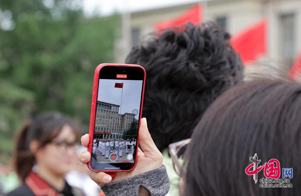 觀眾舉起手機(jī)拍攝軍樂(lè)隊(duì)校慶游園活動(dòng)。中國(guó)網(wǎng)記者 楊楠攝影