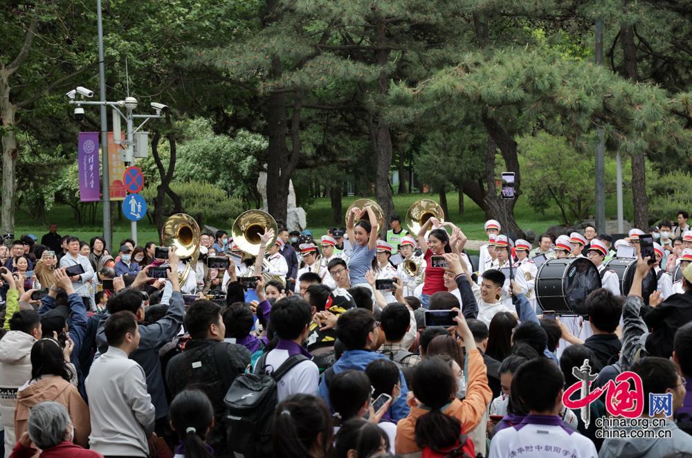 清華大學(xué)113周年校慶軍樂(lè)隊(duì)游園活動(dòng)。中國(guó)網(wǎng)記者 楊楠攝影