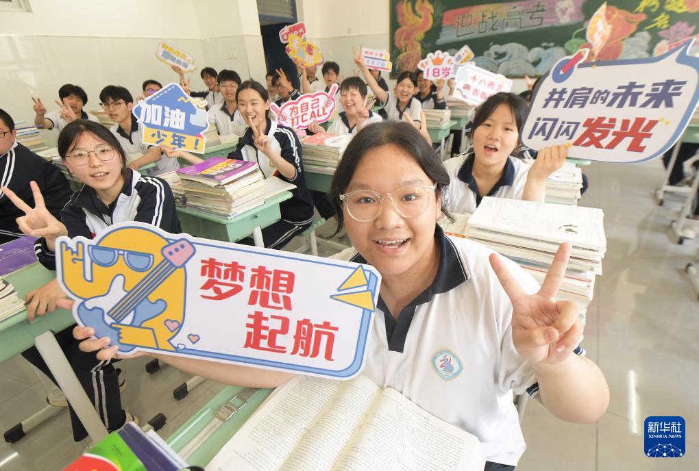 5月14日,河北省石家莊新樂市第四中學(xué)高三的學(xué)生在教室為自己加油鼓勁。