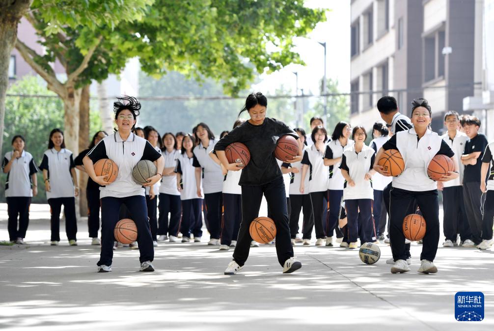 5月14日,山東臨沂第七中學(xué)高三學(xué)生在跳繩。