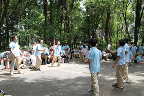 活動可以休息,青春永遠昂揚。休息階段,學生們載歌載舞,虎形山人防公園笑聲直沖云端。