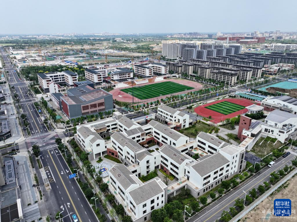 這是位于雄安新區(qū)啟動(dòng)區(qū)內(nèi)的雄安史家胡同小學(xué)和北京四中雄安校區(qū)(5月21日攝,無(wú)人機(jī)照片)。