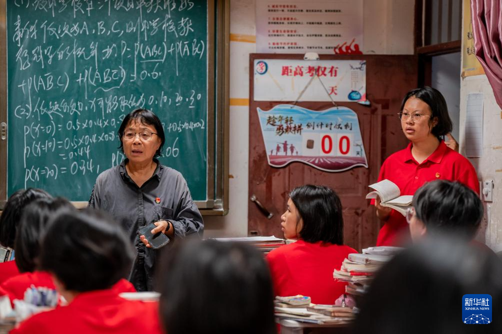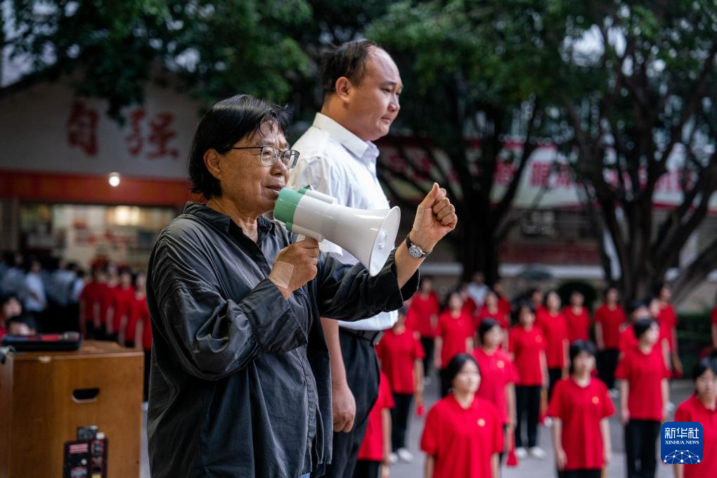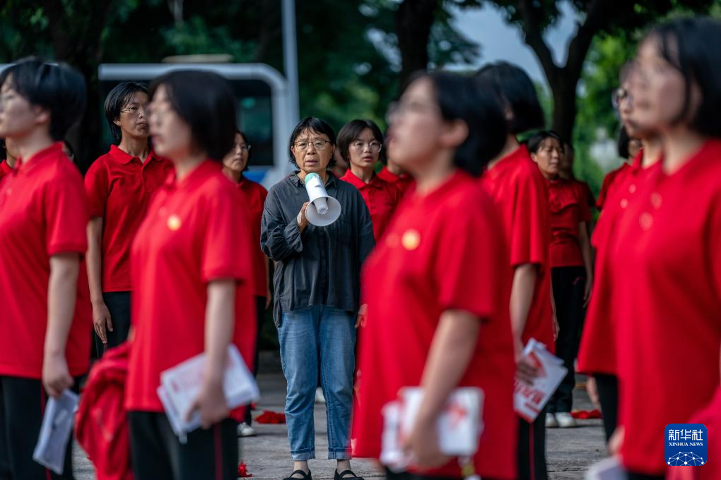 6月7日,張桂梅帶領(lǐng)學(xué)生齊唱歌曲《萬疆》,為高三學(xué)生送考。
