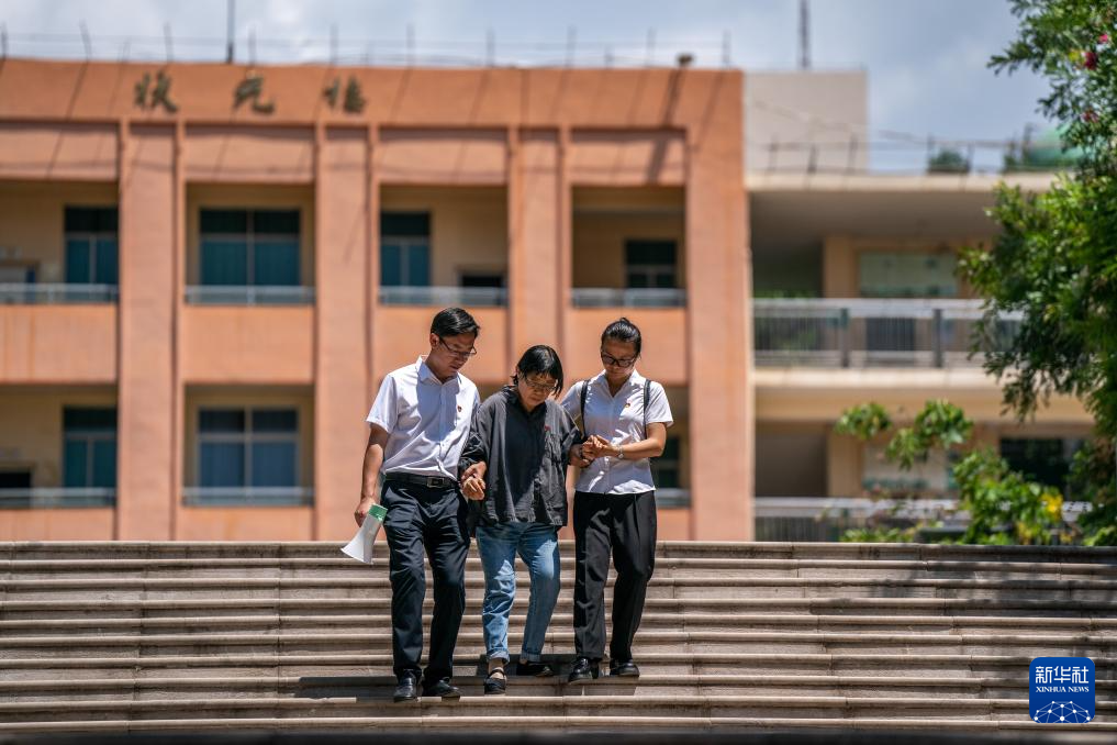 6月7日,張桂梅在同事的攙扶下離開考點。