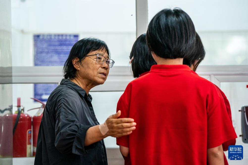 6月7日,醫(yī)生在考點查看張桂梅腰上的病情。
