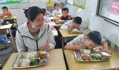 該校三年級學生劉娟的媽媽趙遠敏看到擺放整齊的餐具和新鮮的食材,臉上露出了欣慰的笑容。  陪餐時,她細心地為孩子夾菜,詢問孩子平時在學校的就餐情況。劉娟開心地說:“媽媽,學校的飯菜可好吃啦,我每天都吃得飽飽的。”趙女士聽后放心地點點頭。