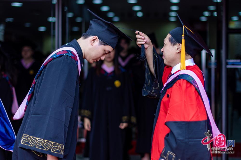 畢業(yè)生導(dǎo)師為學(xué)生撥穗。中國(guó)網(wǎng)記者 鄭亮攝