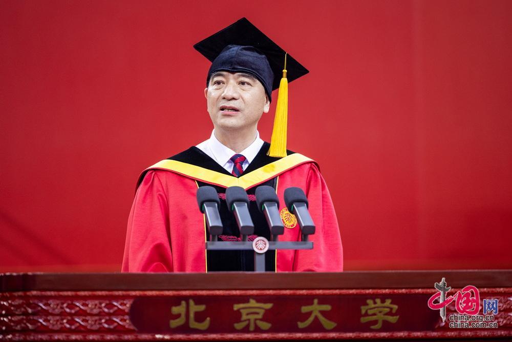 北京大學(xué)校長(zhǎng)龔旗煌在致辭中對(duì)畢業(yè)生們寄予厚望,他希望大家勇做走在時(shí)代前列的北大人,擔(dān)負(fù)起強(qiáng)國(guó)建設(shè)的歷史重任。中國(guó)網(wǎng)記者 鄭亮攝