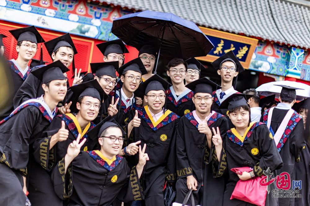 參加典禮的北京大學(xué)本科畢業(yè)生拍照留念。中國(guó)網(wǎng)記者 鄭亮攝