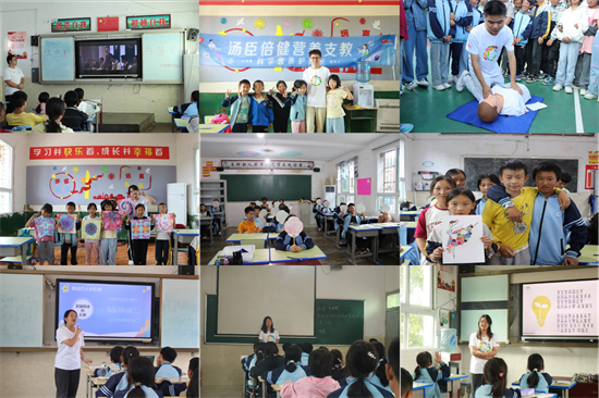 紅色教育,支教隊(duì)以“古田軍號(hào)”為主線,采用觀影、討論及搶答等形式,深刻闡釋紅色故事精髓,強(qiáng)化學(xué)生愛國(guó)情懷與社會(huì)責(zé)任感。心理教育,依托清華大學(xué)社會(huì)科學(xué)院特聘心理講師陳璽竹老師的指導(dǎo),開展青春期情緒認(rèn)知與管理課程,助力學(xué)生科學(xué)應(yīng)對(duì)心理狀態(tài)變化,護(hù)航健康成長(zhǎng)。營(yíng)養(yǎng)健康教育,攜手湯臣倍健,聚焦黃蓮鄉(xiāng)特色飲食,傳授膳食營(yíng)養(yǎng)知識(shí),引導(dǎo)學(xué)生樹立均衡飲食觀念,培養(yǎng)健康飲食習(xí)慣。傳統(tǒng)文化教育,以漆扇制作、扎染為載體,讓學(xué)生親身體驗(yàn)中華文化魅力,增強(qiáng)文化自信與傳承意識(shí)。災(zāi)難應(yīng)對(duì)與急救指南,結(jié)合理論與實(shí)踐,教授心肺復(fù)蘇、海姆立克急救法等技能,有效提升學(xué)生應(yīng)急自救能力,該課程獲四川大學(xué)災(zāi)后重建與管理學(xué)院應(yīng)急救援學(xué)會(huì)鼎力支持。