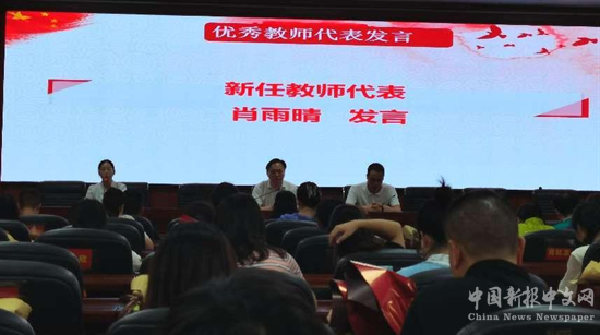 新任教師代表肖雨晴以飽滿的熱情和堅(jiān)定的信念,表達(dá)了自己作為一名新任教師的憧憬和決心。她將傳承勵(lì)志、善學(xué)、求美、創(chuàng)新的育人方針,以學(xué)生為本,敬業(yè)樂群,無私奉獻(xiàn),誨人不倦,認(rèn)真上好每一堂課。本著勤奮、向上、樂業(yè)的態(tài)度,努力工作,爭取早日成為一名合格的中學(xué)教師,成為一名優(yōu)秀的中學(xué)教師!