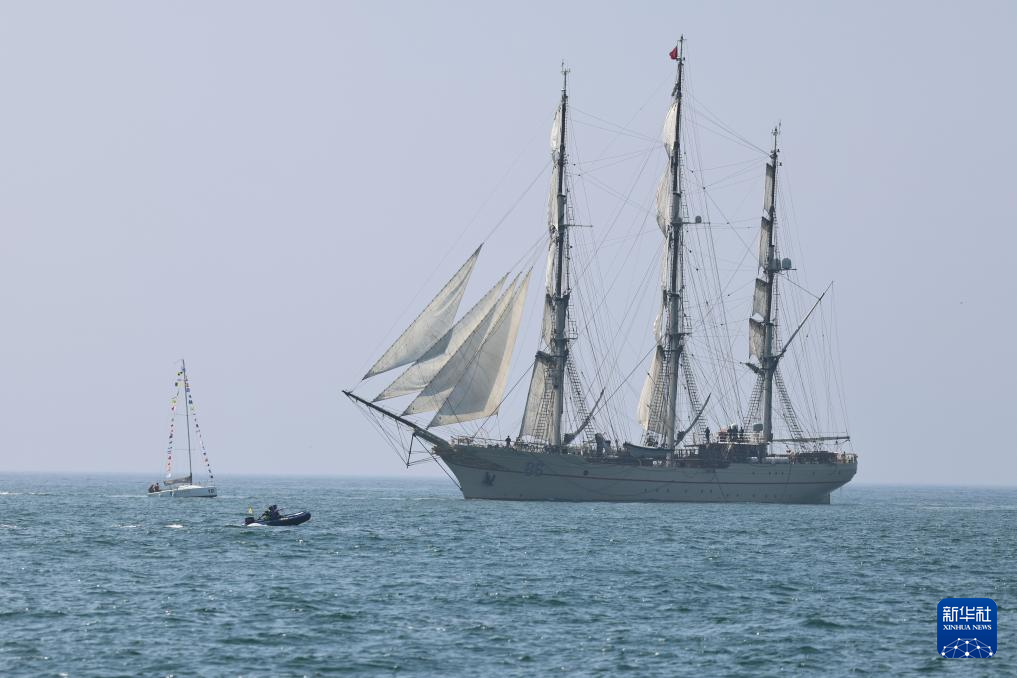 7月21日,在中國海軍主辦的首屆“海軍杯”國際帆船邀請賽開幕式上,中國海軍“破浪”號風(fēng)帆訓(xùn)練艦進(jìn)行航行展示。新華社發(fā)(李昊天 攝)
