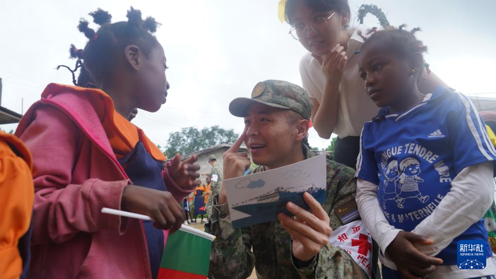 10月10日,中國海軍“和平方舟”號醫(yī)院船在喀麥隆開展活動,醫(yī)務人員發(fā)放宣傳手冊。