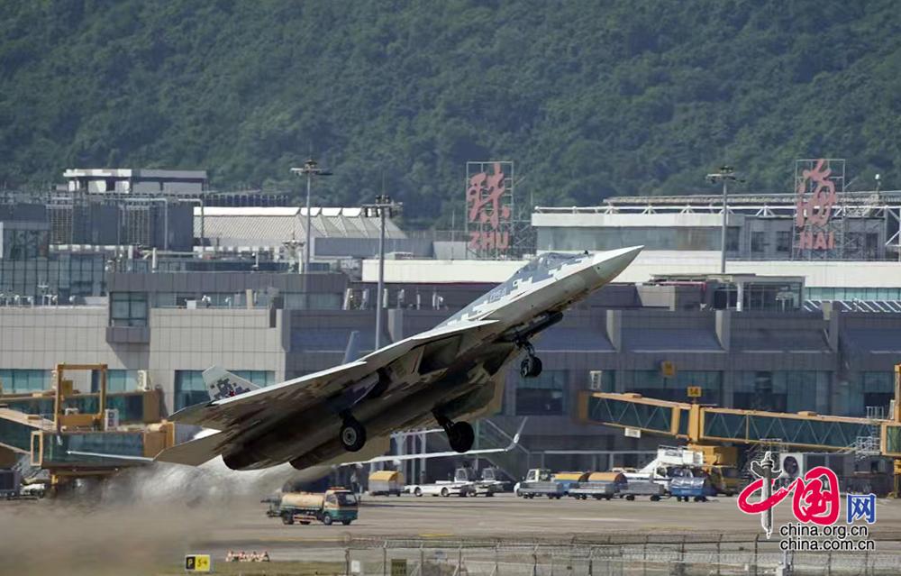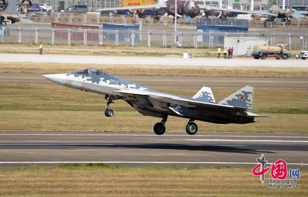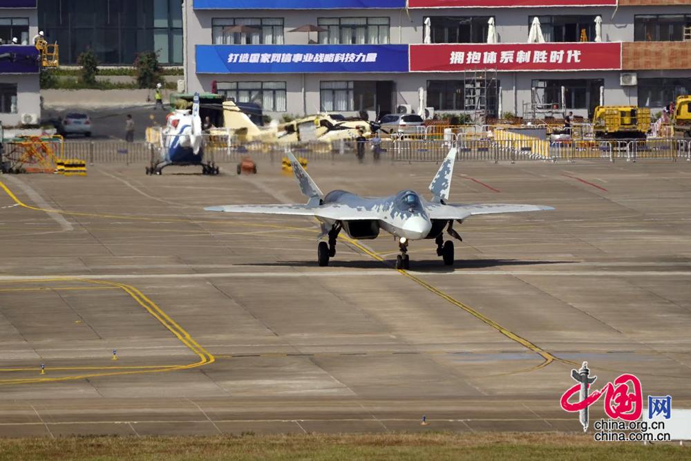 11月7日,俄羅斯蘇-57隱形戰(zhàn)機在珠海金灣機場展開首次適應(yīng)性訓(xùn)練。中國網(wǎng)記者 楊佳 攝影