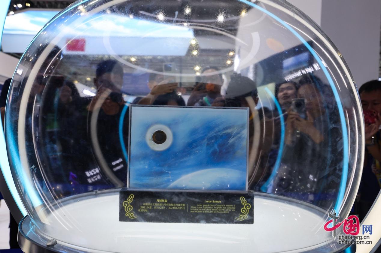 11月13日,月壤樣品展臺(tái)吸引眾多觀眾圍觀。中國網(wǎng)記者 董寧 攝影