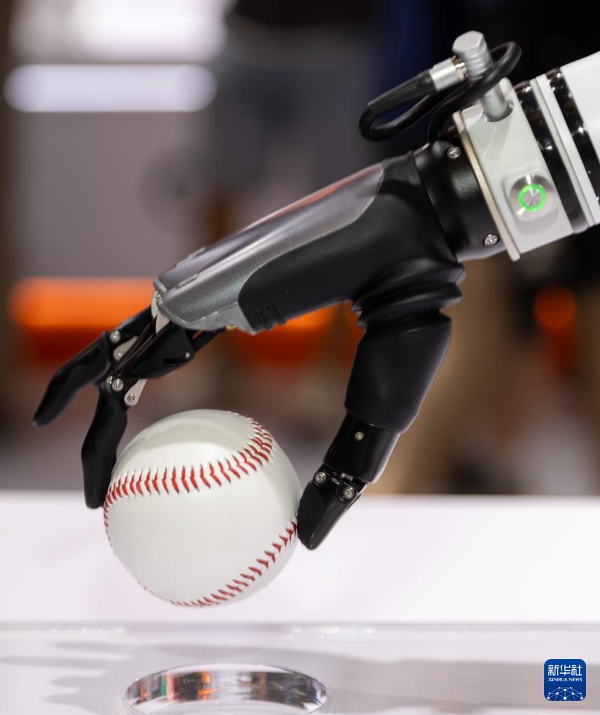 7月4日在2024世界人工智能大會傲意科技展位拍攝的機器人靈巧手。