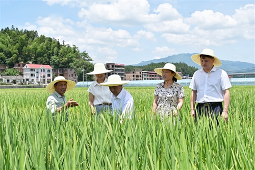 7月23日,湖南農(nóng)業(yè)大學(xué)黨委副書記、水稻專家陳光輝教授一行冒著酷暑深入隆回縣羊古坳鎮(zhèn)雷峰村超級(jí)稻基地田間,調(diào)研指導(dǎo)再生稻、超級(jí)稻、以及新品種試驗(yàn)示范工作。