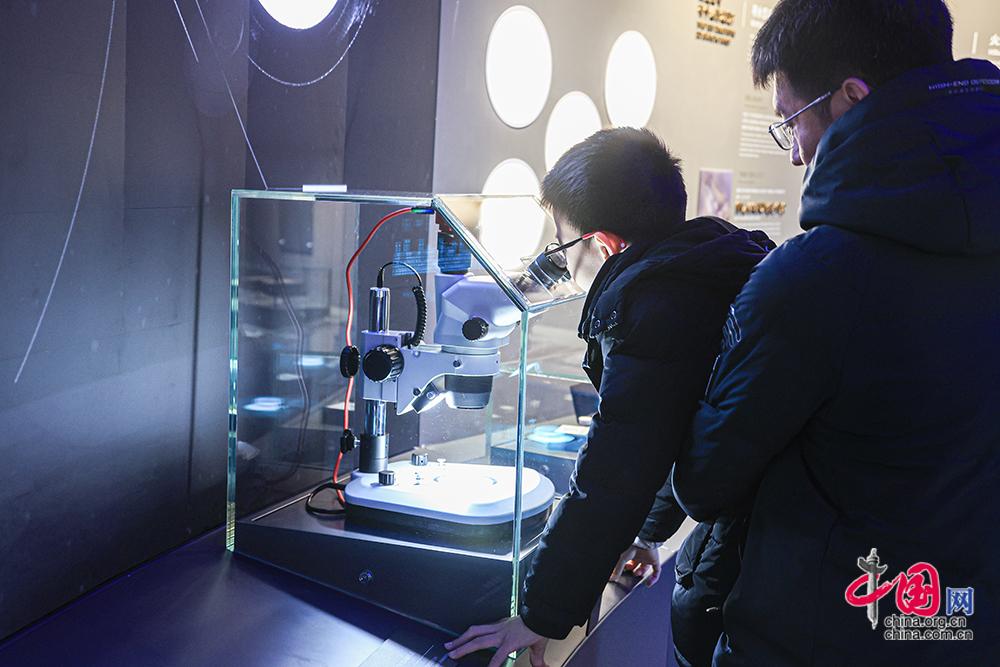 12月28日,“問月——中國探月工程嫦娥五號(hào)月球樣品展”在北京天文館B館一層展廳拉開帷幕。中國網(wǎng)記者 倫曉璇 攝